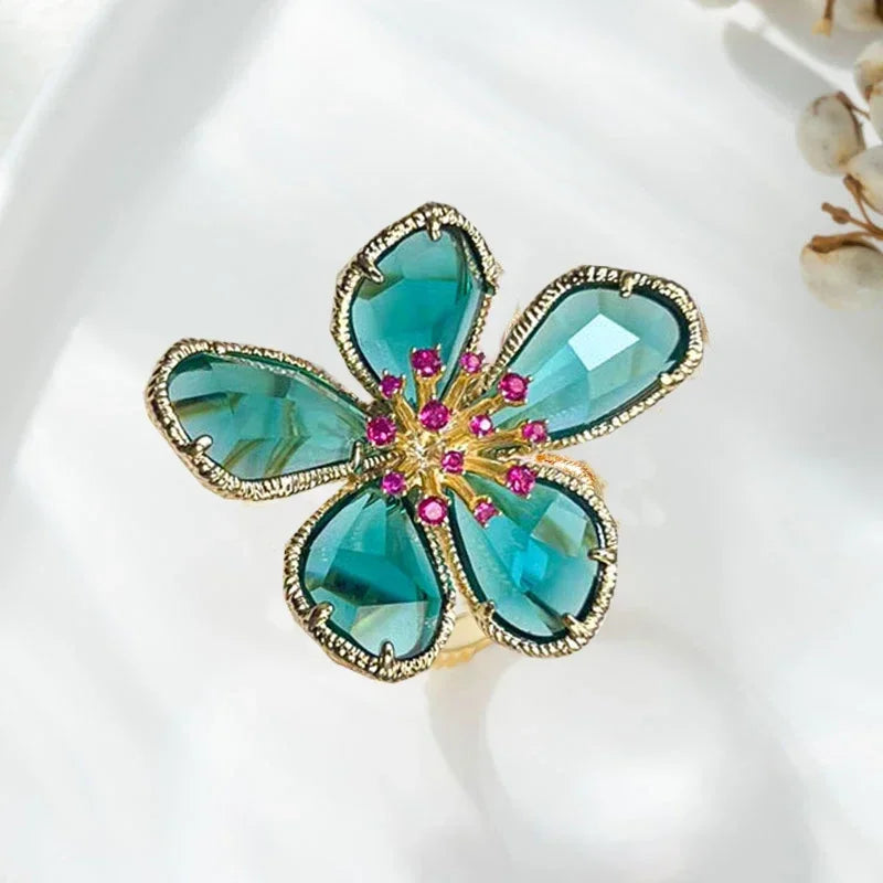 Fashion Elegant Crystal Flower Open Ring for Women 2024 New Luxury Wedding Party Jewelry Accessories Christmas Gifts